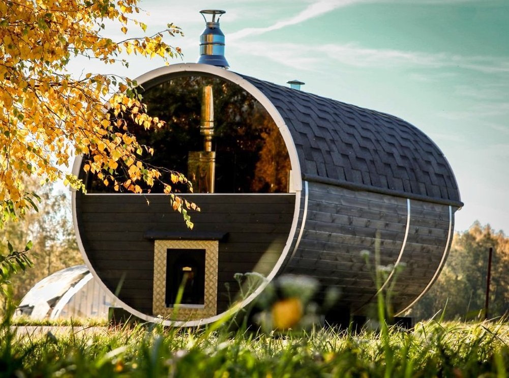 Баня-бочка «Орео» с боковым входом и панорамным окном Стильная и современная баня-бочка с боковым входом может быть выполнена длиною от 4 метров, что-бы было два отделения (парилка и комната отдыха). Полок может быть, как с двух сторон, так и угловой, в стандарте одноуровневый. Печь в данной модели расположена сбоку с топкой наружу, либо внутрь парилки. Печь можно укомплектовать баком для воды, а саму баню сделать длиною до 6 метров, комфортно разместив в ней дополнительно помывочную. В эту модель включено два закаленных стеклопакета: круглое и полукруг, которые мы можем разместить на ваше усмотрение в парилке и комнате отдыха. Обращаем Ваше внимание, по умолчанию в данной модели отсутствует бак для воды, вместо него идёт утеплённая термо-труба, которую можно заменить на бак по желанию.