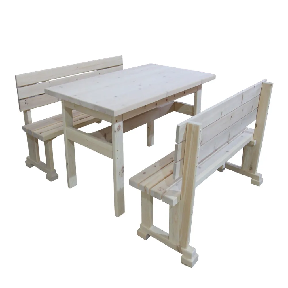 Комплект уличной мебели "Стол с лавками" Материал: алтайский кедр Длина: 1500 мм Высота стола: 780 мм Высота сиденья лавки: 400 мм Ширина столешницы: 900 мм Ширина сидений: 400 мм Толщина столешницы: 40 мм