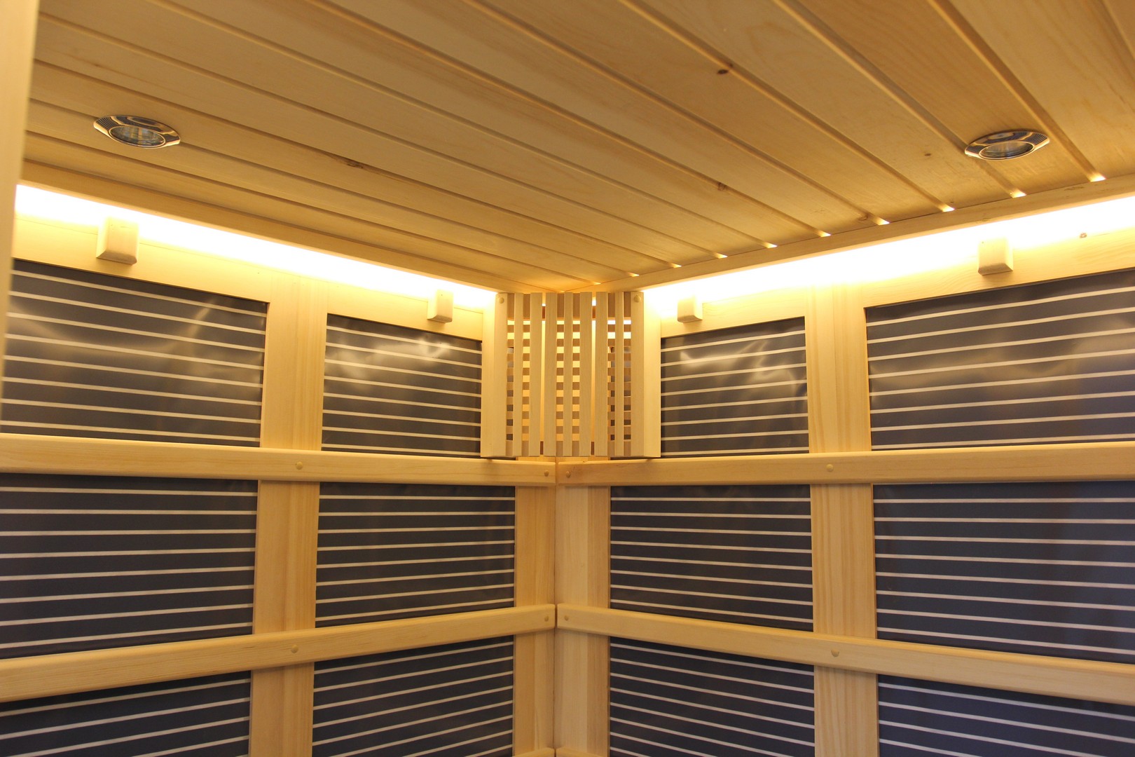 Трёхместная угловая инфракрасная сауна кабина из кедра с керамическими излучателями